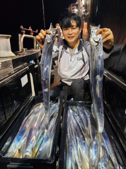 ☆ 23일 갈치텐빈 조황 ☆안녕하세요 제주블레스호 이선장 입니다.오늘도 몇일만에 나간 바다네요~;올해 가을 바다기상이 유독 말썽입니다..최근 갈치 조황이 썩 좋지 못해 걱정하면서출항 했습니다.걱정과 달리 하루종일 꾸준히 갈치들이 올라와줘서 끝날때까지 지루하지 않게 재밌게들하셨습니다ㅎㅎ기본사이즈도 크고 대치들도 많이 나오고만족할만한 출항이였던거 같습니다!!30일(토요일) 기상이 좋아지는듯하여마지막 갈치텐빈 졸업식이 될듯 합니다.토요일전까진 기상악화로 출항이 힘들듯하구요;;요즘 기상이며 비행기 표며 참 제주낚시가 힘들긴한거 같습니다.그래도 마지막 갈치 졸업식 날은 기상이 괜찮아지길바래보겠습니다.오늘도 고생많으셨습니다 감사합니다!! #갈치지깅텐빈&텐야 #김녕항 #제주블레스호 #픽업택배손질가능*** 제주 블레스호 예약 안내 ***예약문의 : 010-5630-3010오시는길 : 제주도 제주시 한경면 신창리 348-8홈페이지 : http://bless.sunsang24.com/https://band.us/@bless