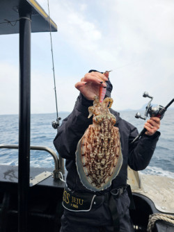 ☆ 4월10일 갑오징어 조황 ☆안녕하세요 제주블레스호 이선장 입니다.모슬포항에서 갑이 9시출항 2일째 입니다.오전에는 정말 한여름인줄 알았습니다;;반팔들 입고 낚시들 하셨어요~ㅎㅎ포인트 도착후 바람 한점 없어서 풍빼고시작했습니다~흘림낚시에 익숙치 못해서인지 한두분만잡으시고 나머지분들은 감을 못잡으시네요..다행히 오후들어 바람좀 불어주어 풍피고시작하는순간 여기저기 번갈아 가면서히트들 하며 연신 갑이들 뽑아내시네요!!오랜만에 선장 뛰어 다니느라 땀좀 뺐습니다;;점심먹기 전까지 1마리 잡으시던 최사장님오후들어 23마리 뽑아내버리시네요ㅎㅎ제주갑 처음이시라던 박사장님 일행 사모님도첫출조에 17마리 하셨다니 다행입니다~선장인 저는 손님들 마릿수를 잘 세지않습니다.손님분들이 알려주시면 알고 안알려주시면몰라요ㅎㅎ마릿수도 중요하겠지만 재밌게 놀았으면됐죠 뭐 ㅎㅎ오늘도 고생많으셨습니다 감사합니다!!내일(금) 출항후 몇일 기상악화로 쉬어갈듯싶습니다.다음주 여유자리 몇자리 있습니다. #제주갑오징어 #제주블레스호 #모슬포항 #픽업택배손질가능*** 제주 블레스호 예약 안내 ***예약문의 : 010-5630-3010오시는길 : 제주도 제주시 한경면 신창리 348-8홈페이지 : http://bless.sunsang24.com/https://band.us/@bless
